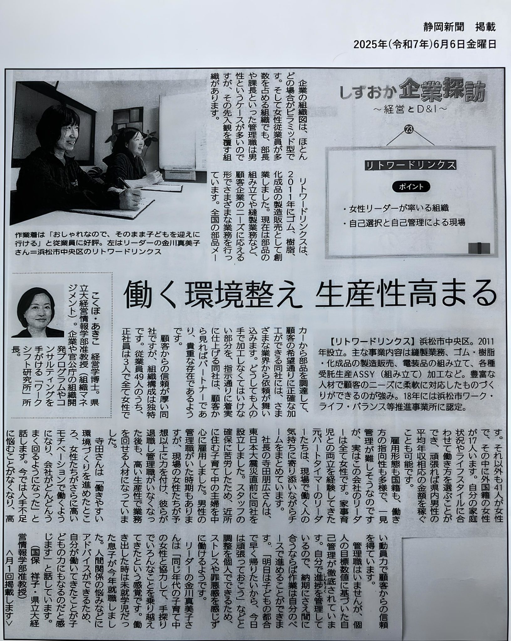2025年6月6日(金)静岡新聞掲載 女性が働きやすい環境づくりについて取材していただきました。 https://www.rettwordlinks.com/wp-content/uploads/2025/07/S__4112388-2.jpg