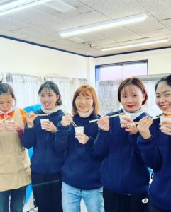 ベトナム人実習生もはじめてのおしるこでしたが、喜んでいました。